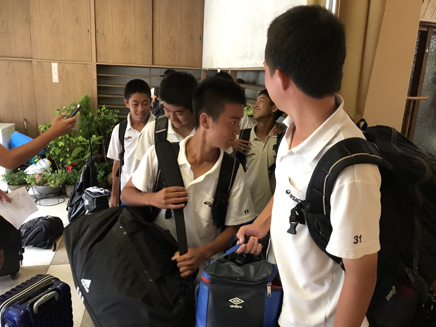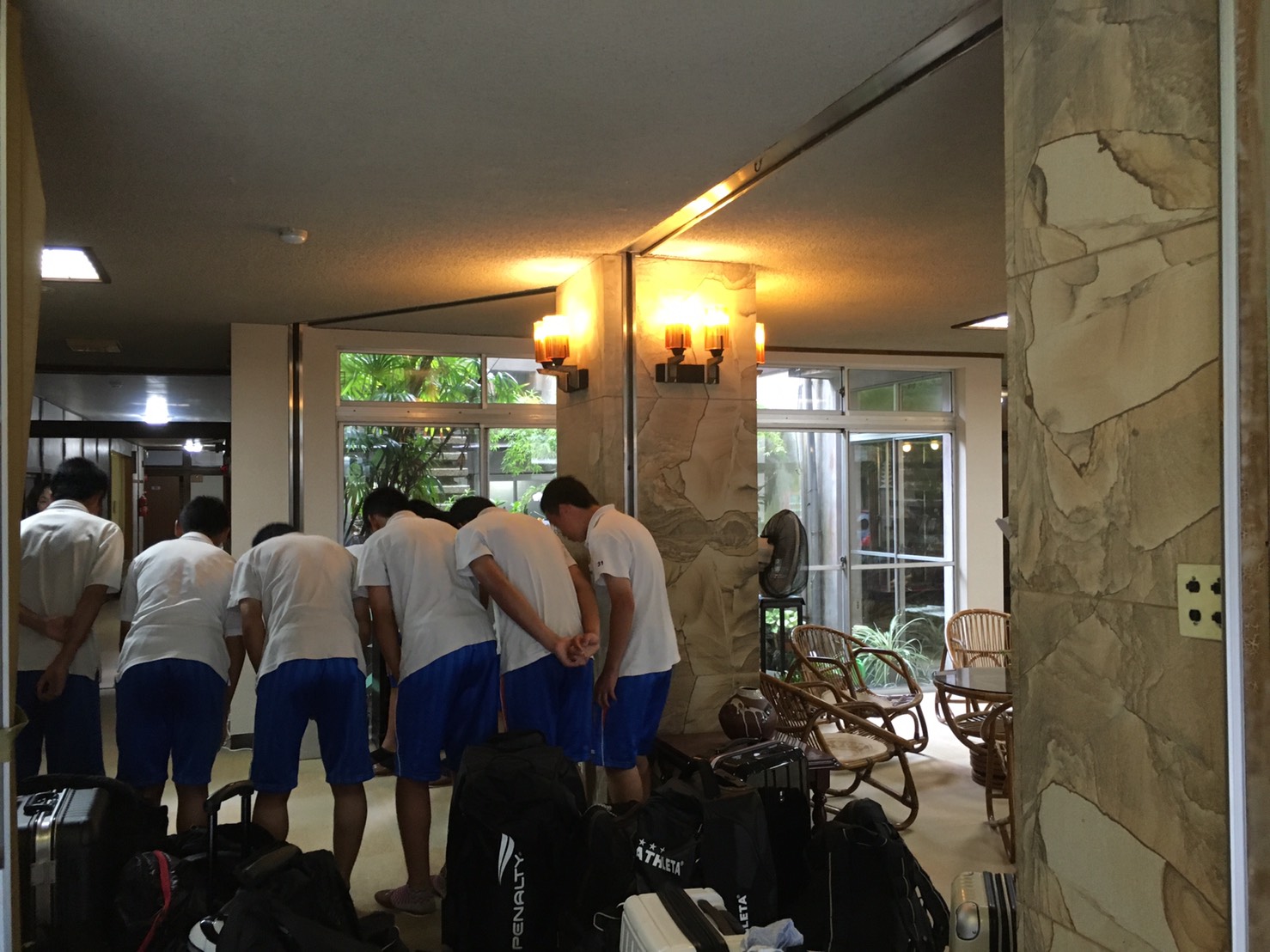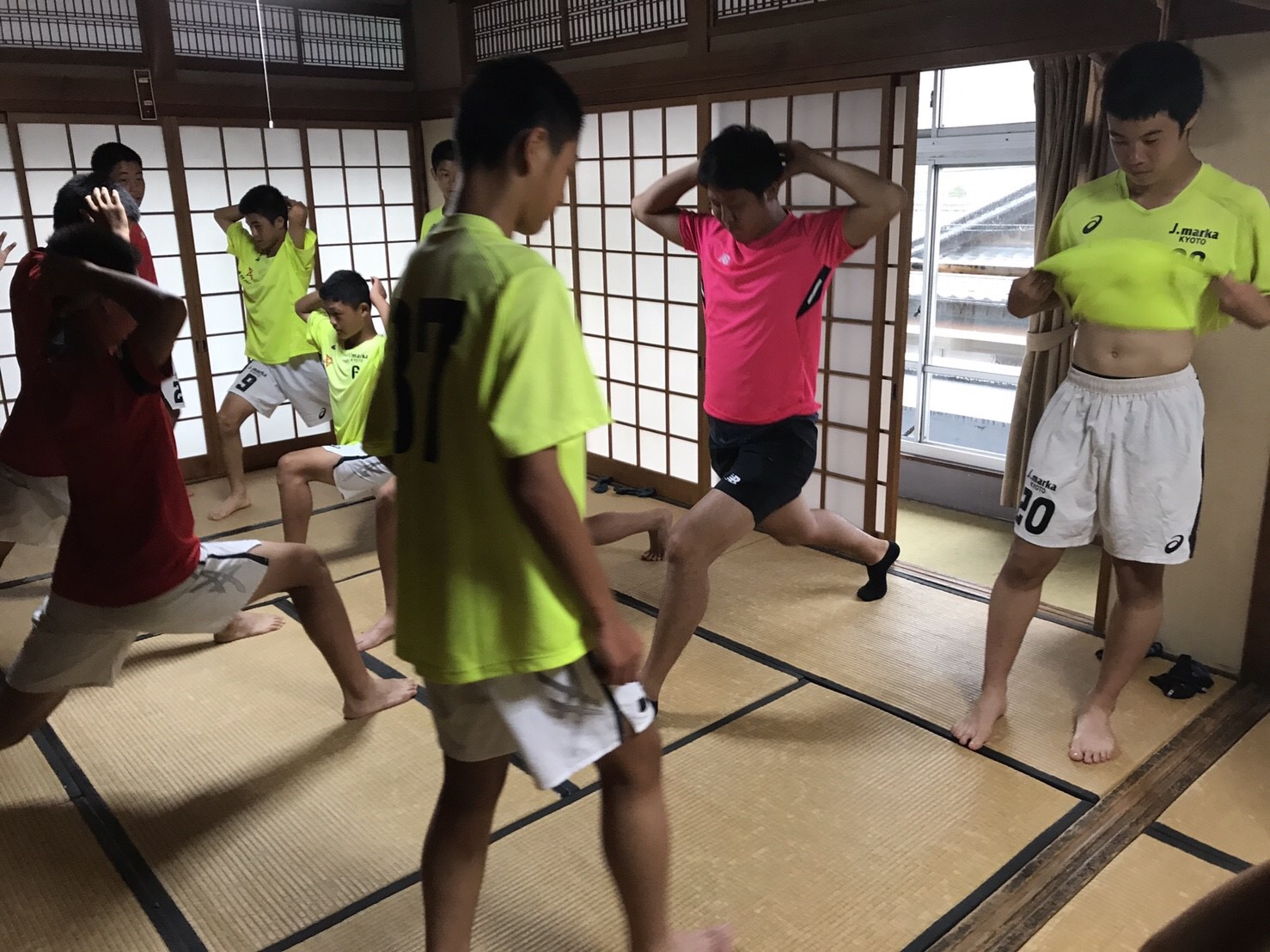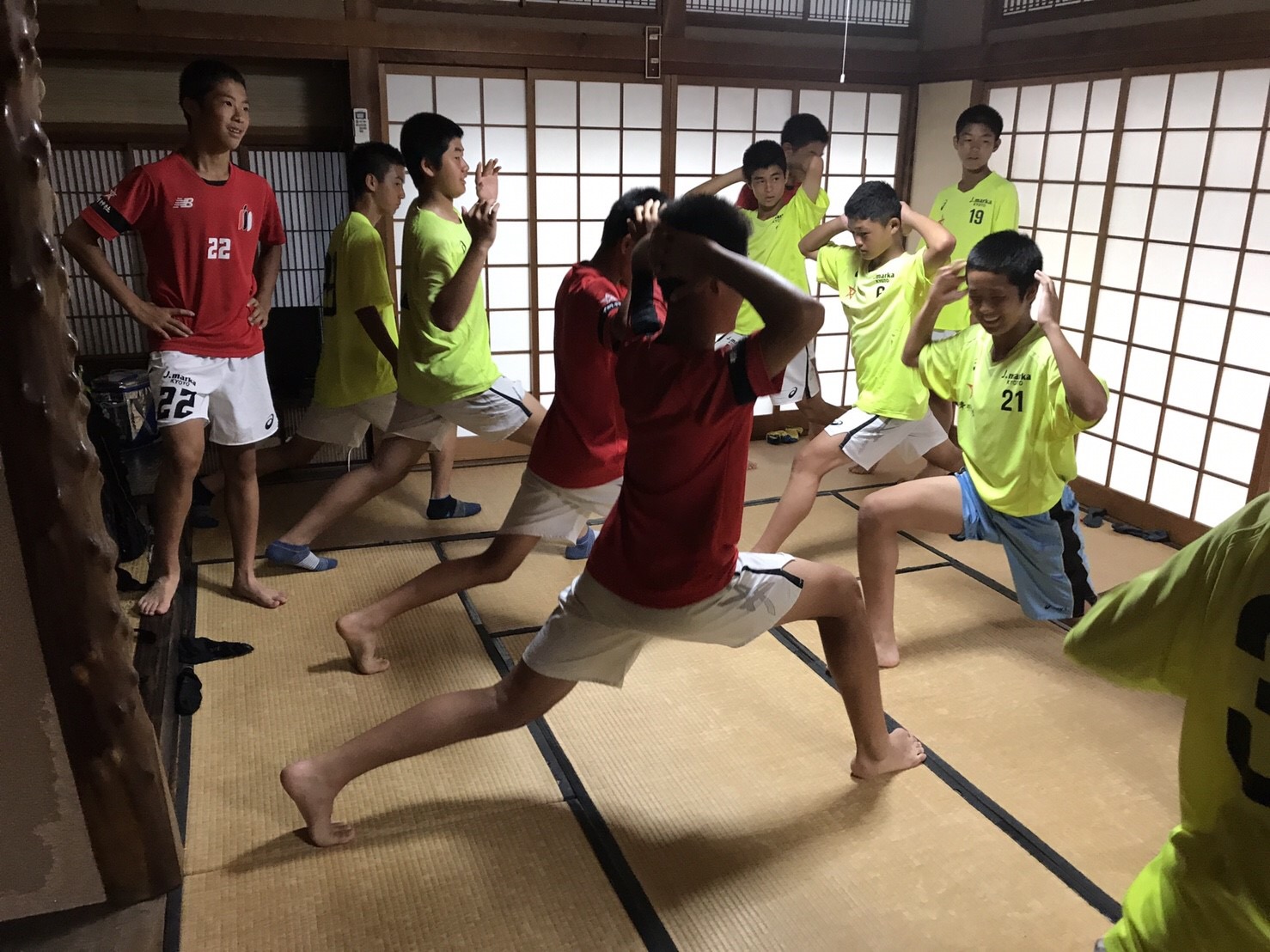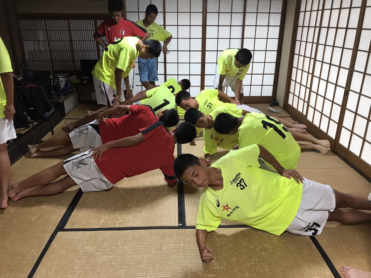 宿舎に到着後、体幹トレーニングやミーティングを行い次の日に備えます!